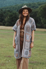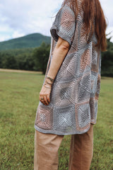 Constructed entirely of crocheted squares, the Helios Poncho is named for the Greek god of the sun due to the sunburst pattern created with both the stitches and color change yarn. This easy level pattern is the perfect on-the-go project as you can make one square at time and seam them together later. Wear your poncho over a simple tank in warmer weather or layer it up over a turtleneck once the temperatures dip!