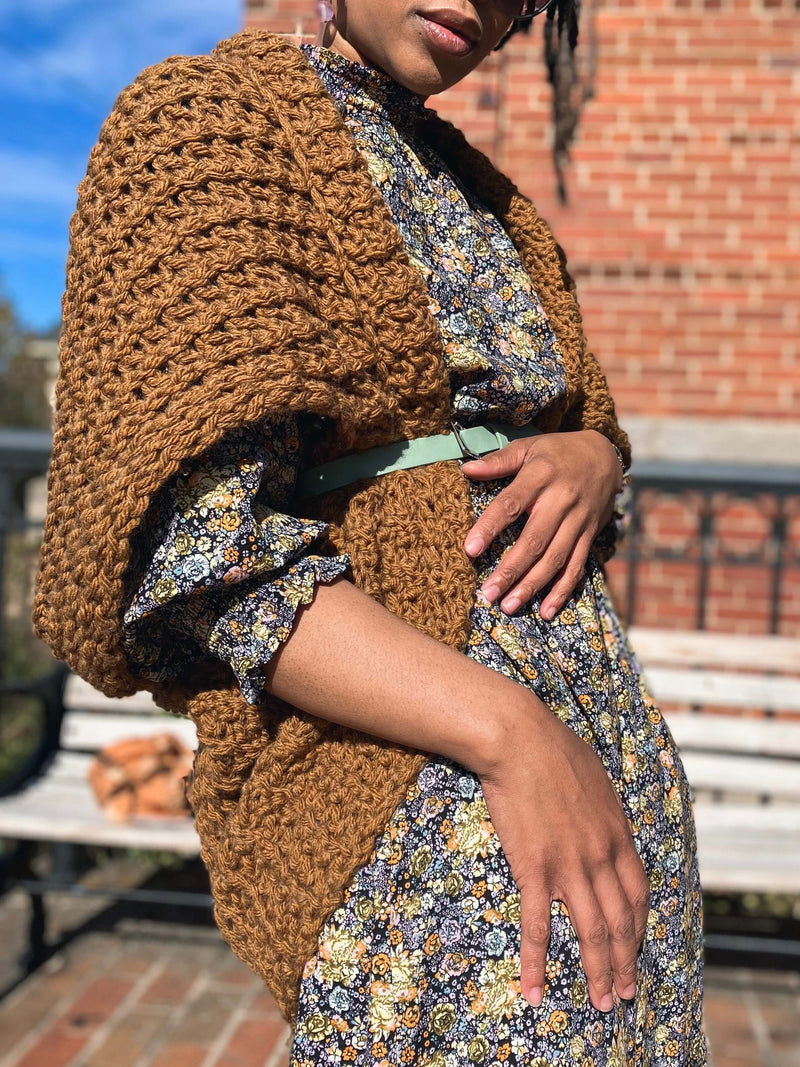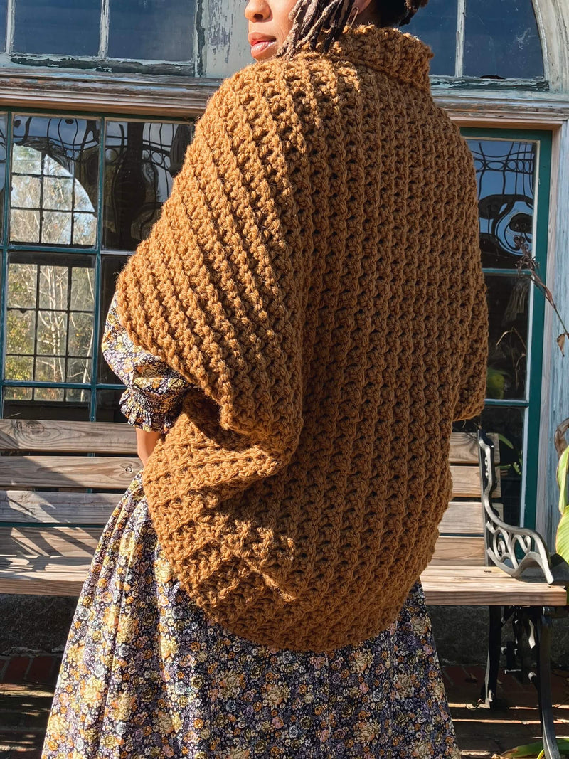The Hideaway Shrug is a blank canvas for your style. It’s an easy pattern to make and even more fun to wear. You’ll go from a square to a shrug in no time!