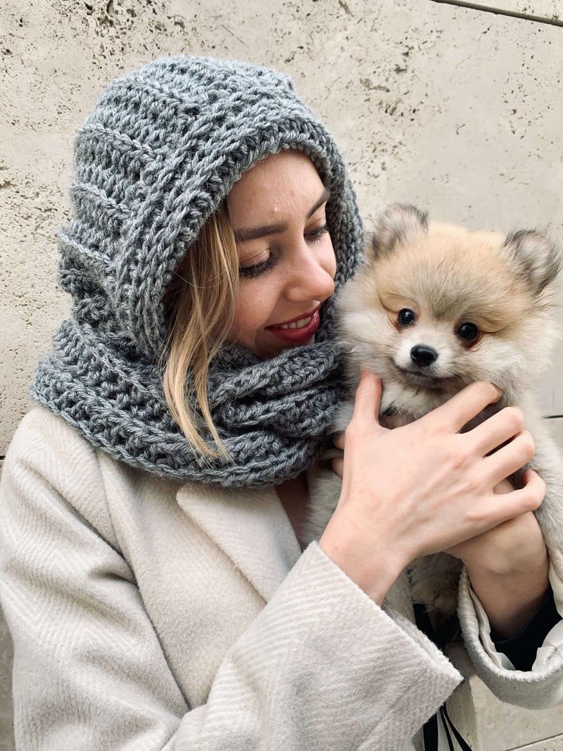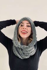 This pattern was well-written and easy to follow. It's a hood attached to an infinity scarf of just the right length to wrap around the neck once. Very clever design.