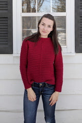 Length: 19” (S), 20.25” (M), 21.5” (L), 22.25” (XL), 23” (2XL), 24.5” (3XL).Pattern Yarn Weight