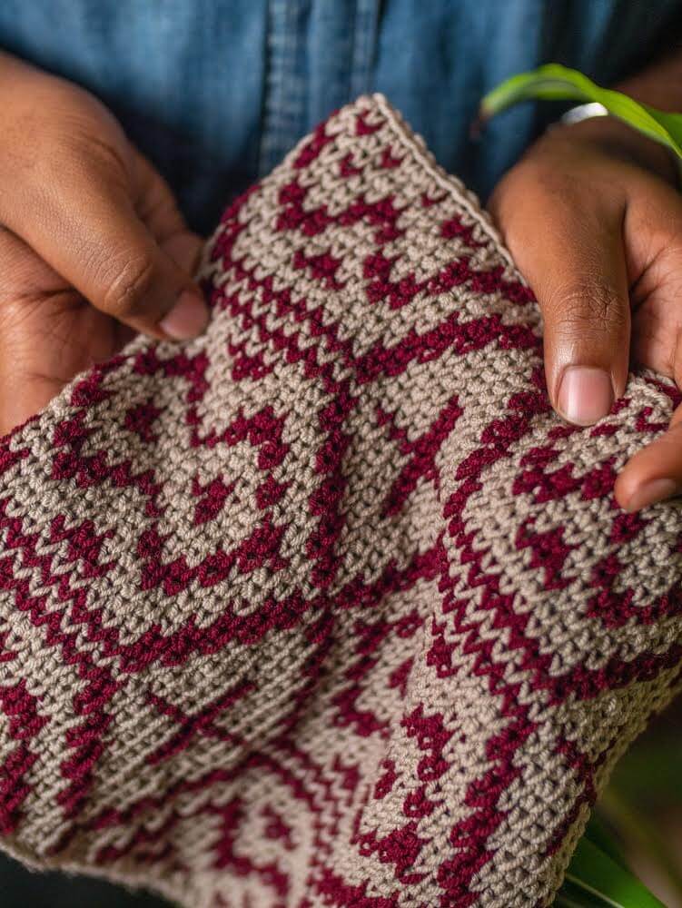 Vincent Williams is the crochet and knitwear designer behind @visuvios_crafts , which was born from his longing for stunningly timeless knits that’ll keep you warm in the coldest of mid-winter horse pastures. When he isn’t crafting, he’s working with dogs, horses, and playing music. So if you ever see him without headphones and a tapestry crochet design in the works, you are truly in for a treat! Join all the crafty vibes of his maker journey here on Instagram and visit VisuviosCrafts.com for cozy creations, monthly Maker Mood playlists, and fun patterns for makers just like you!