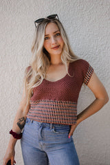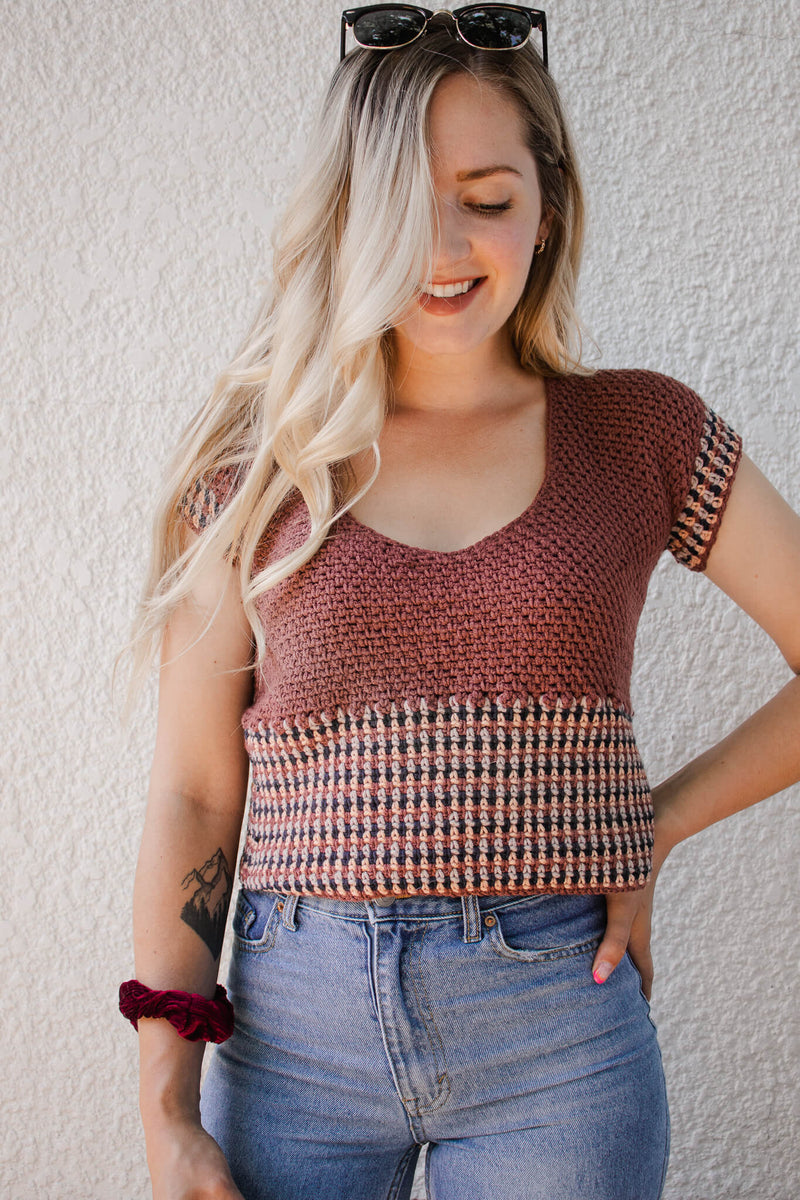 The Jewel Tone Tee is a colorful summer tee with a softly curving neckline, short sleeves, and a relaxed fit. This lightweight stitch pattern is quick to crochet and brings some drape and stretch. The special feature of this design is the striping of three accent colors along the bottom edge and sleeves which, when worked in the linen stitch, creates a powerful statement detail resembling little jewels. Crocheted using Lion Brand Color Theory, a family of sophisticated colors intended to be mixed and matched with one another. You’ll need 4 colors to create your own Jewel Tone Tee - picking your colors is half the fun!