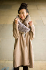 The Luxe Faux Fur Cowl is a gorgeous and luxurious cowl that has two contrasting textures/sides that can be worn and displayed in various ways. This cowl can twist to show either the faux fur side using “Go For Faux Yarn” or the textured worsted weight side using “Heartland Yarn”. This cowl is a statement piece that looks high end and will keep you very warm and cozy!
