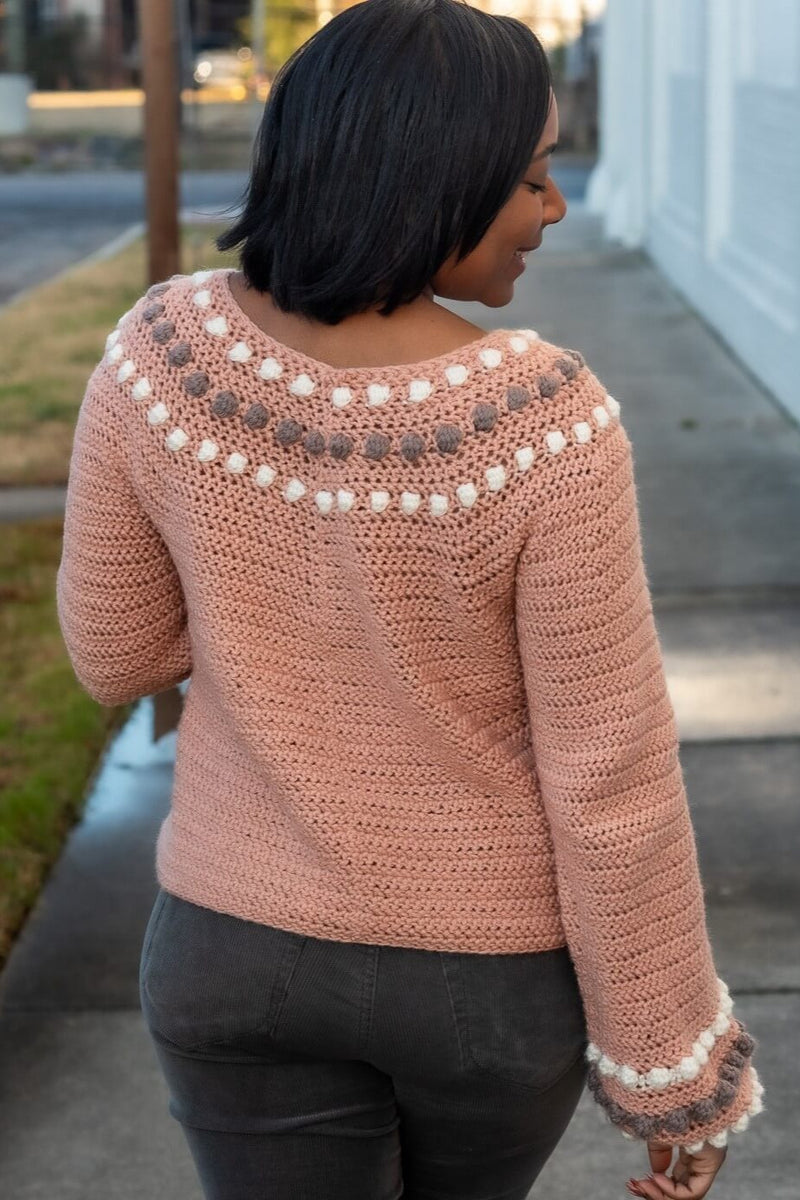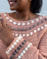 The Maisie Sweater has between 3-5"/ 7.5cm-12.5cm of positive ease.