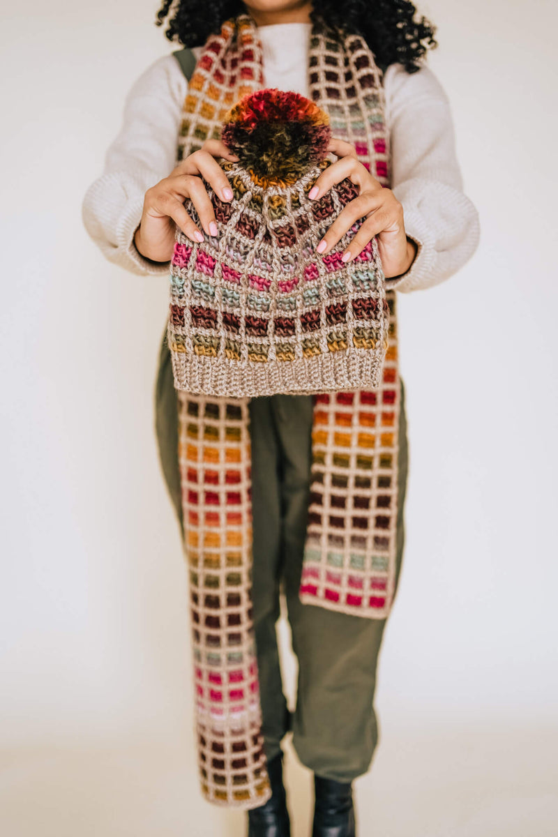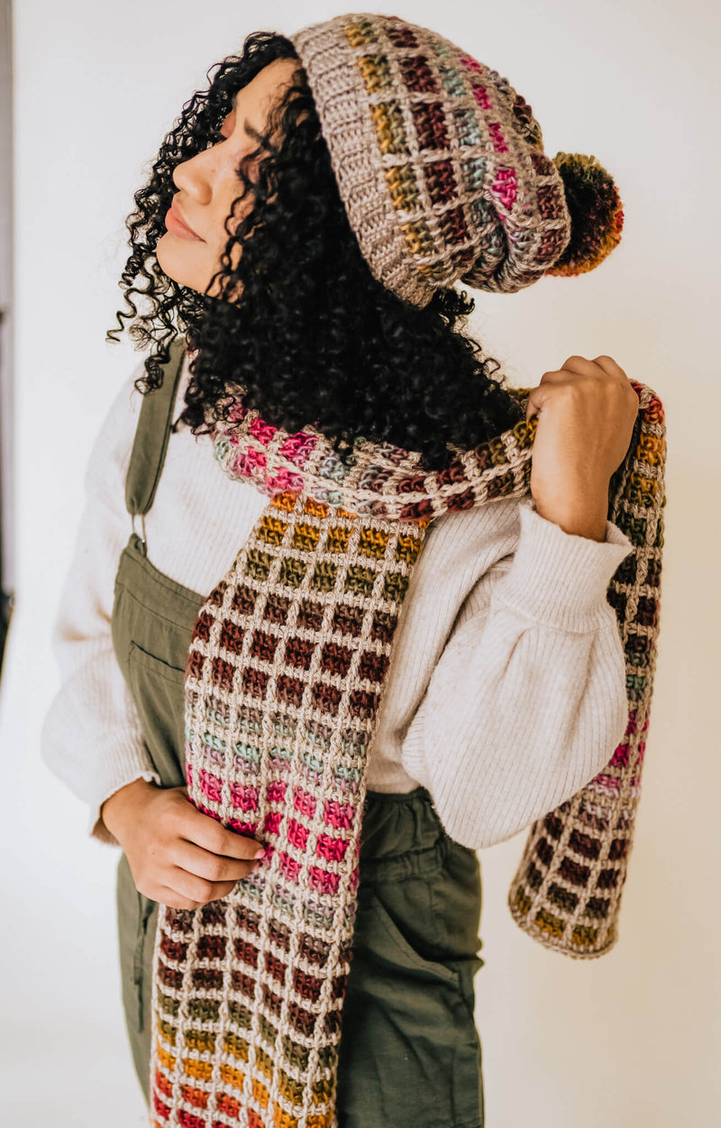 Set off on your next adventure with this playful pair. The Mesa Hat and Scarf bring the color without all the fuss by usingself-striping single-ply yarn. When paired with a lightly heathered neutral color, the overall finish looks way more complicated than the actual stitchesare. Thismatching hat and scarfset is easy to customize and perfect for those looking to expand on their Tunisian crochet skills.