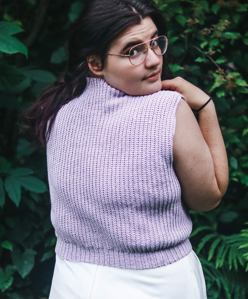 The Milan top is the effortlessly cool summer top you need to elevate your wardrobe. The mock neck, underarm shaping, and tapered waist callback to 90s preppy fashion, but with a modern and size inclusive take. Pattern is graded for sizes XS-5X and is constructed from side to side.