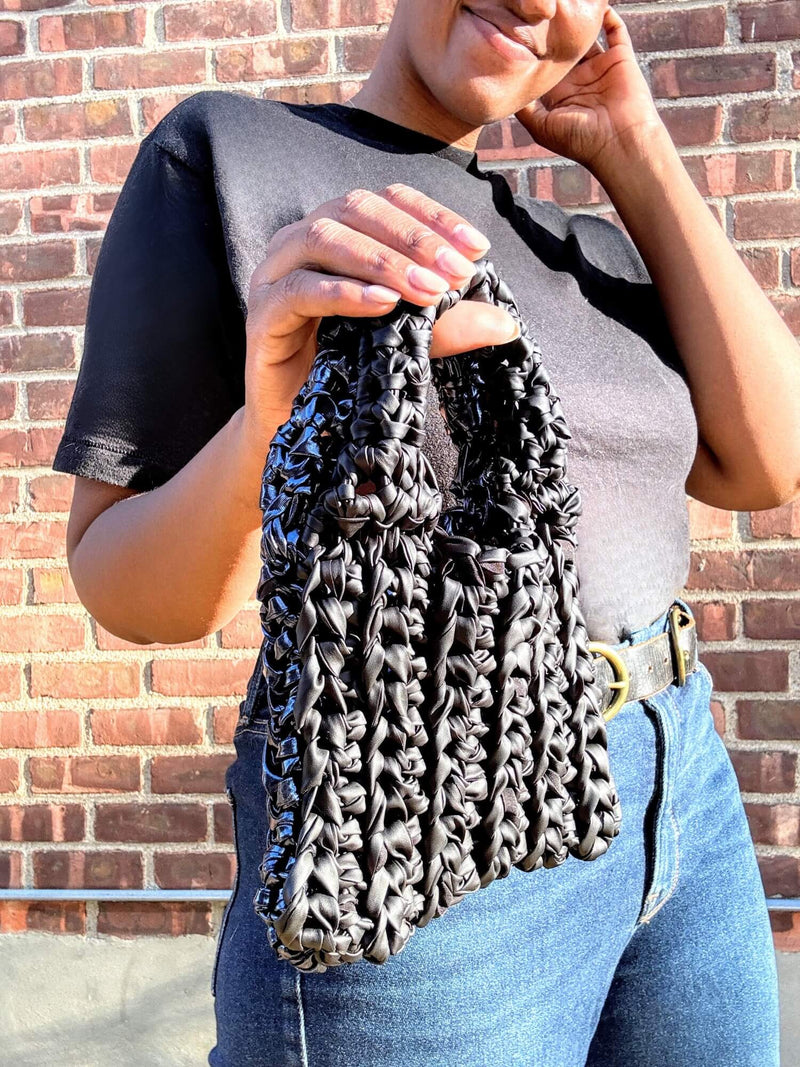 Elevate your holiday & night out style with the chic Mini Note Crochet purse! Using Lion Brand Yarn's Faux Leather Yarn, this purse features a ribbed knit-look texture and is the perfect quick project to add to your collection. Whether you’re getting ready for a night out or stitching it up a last-minute gift, this compact project is ideal to grab and go for any festive occasion. This project adds just a hint...or a note of shine to your outfit. Craft one for yourself or for a friend! This purse adds a polished touch to any outfit, no matter where the night takes you.
