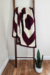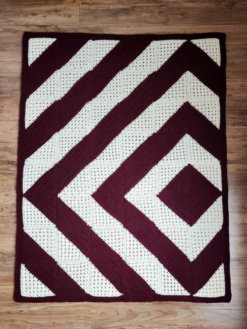 Create this Modern Crochet Motif Blanket with just one simple, two-tone, crochet square. Each motif is crocheted on the bias using two colors of yarn and the classic granny stitch pattern and double crochet stitches. You'll then arrange and seam the motifs in a modern quilt layout and finish it out with a simple border.