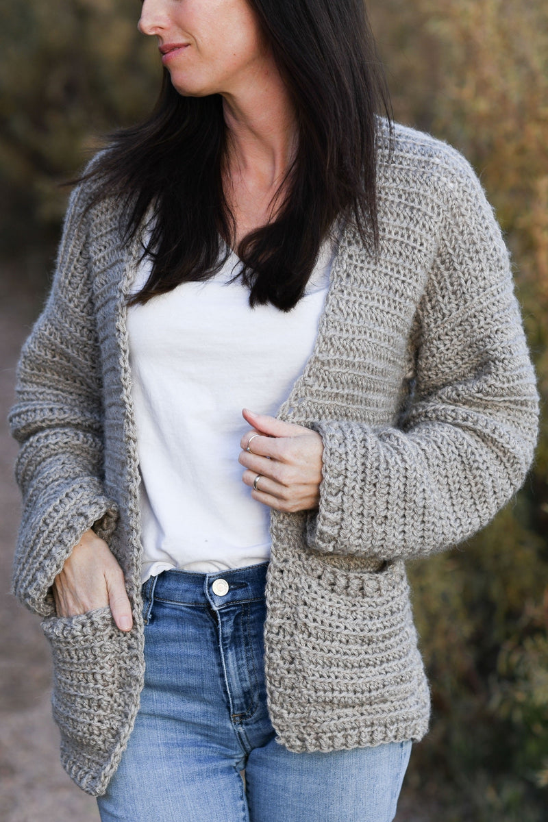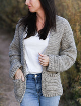Boyfriend cardigans are everywhere this season! This comfy, classic version is crocheted with basic shapes and easy stitches, making it a great beginner sweater. It features a relaxed fit with minimal shaping on the sleeves so it’s both a fun and practical piece. The alpaca blend yarn will keep you warm while pockets in front add comfort and character to this season’s wardrobe staple.