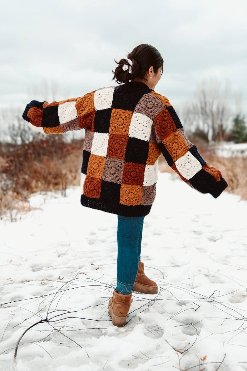 Say hello to the Never Off Cardigan! This pattern is perfect for confident beginners looking to create something fun, stylish, and wearable. With and easy-to-follow construction, and oversized fit, and a mix of colourful squares, this cardigan is cozy, squishy, and full of personality. Whether you’re adding it to your wardrobe or making it as a gift, it’s a project you’ll enjoy from start to finish!
