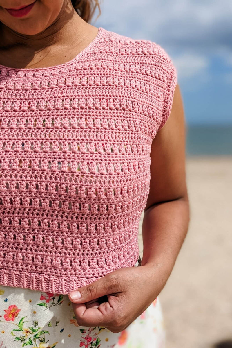 Note: Garment can be made straight without waist shaping, but you may need an extra ball of yarn.