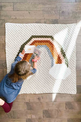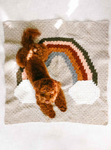 Ever wonder what’s at the end of a crochet rainbow? Puff stitch clouds, of course! This blanket pattern combines traditional corner-to-corner diagonal box stitches (what you typically think of as c2c) with richly-textured popcorn stitches to create a modern, cheerful rainbow. Perfect for anyone who needs a little magic in their lives!