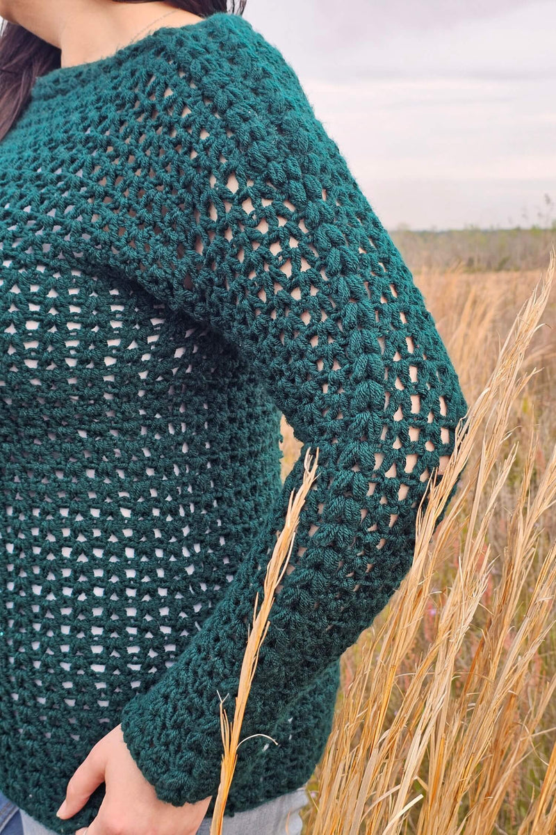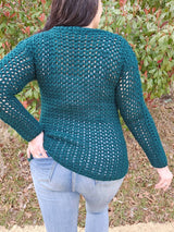 The Oversized V Pullover is the perfect breezy sweater to add to your wardrobe. The pattern uses fun double crochet lace stitches with a few puff stitches to create a beautiful textured look. It is light & airy for spring/fall & still keeps you cozy warm.