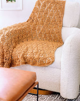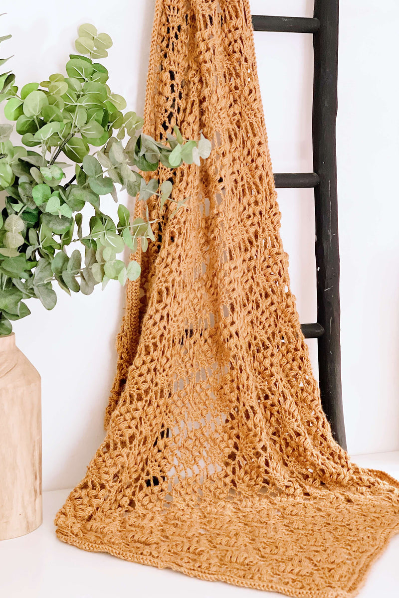 Due to the nature of this yarn and stitch, gauge can be tough to measure in pattern. I recommend crocheting a small swatch of double crochet 16 stitches across and 6 rows high to measure 4 wide and 6 inches long. Give this a block with some steam and measure. Change hook size as needed.
