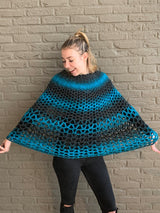 A simple poncho that works up fast. Available in one size that fits most people, which makes it a perfect gift for family and friends. Stay warm and comfy this season with this self-striping poncho!