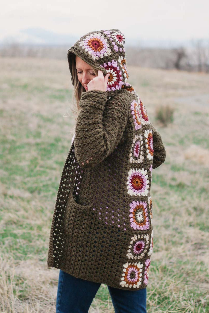 Main Sweater: 9 rows x 5 clusters = 4”Each granny square after blocking (4 rounds) = 4.75”