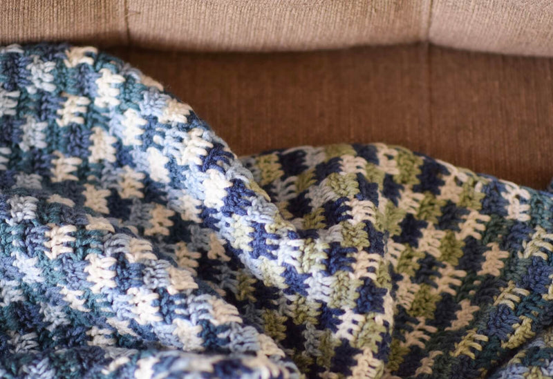 Crochet this pretty blanket featuring the popular checker pattern without having to make any color changes! This light weight blanket features modern stitching with a variety of color options and it works up easily with beloved Mandala yarn. The checkered stitch pattern continues to be on trend, making this a perfect blanket for anyone – kids to adults. Choose your favorite colorway and have fun!