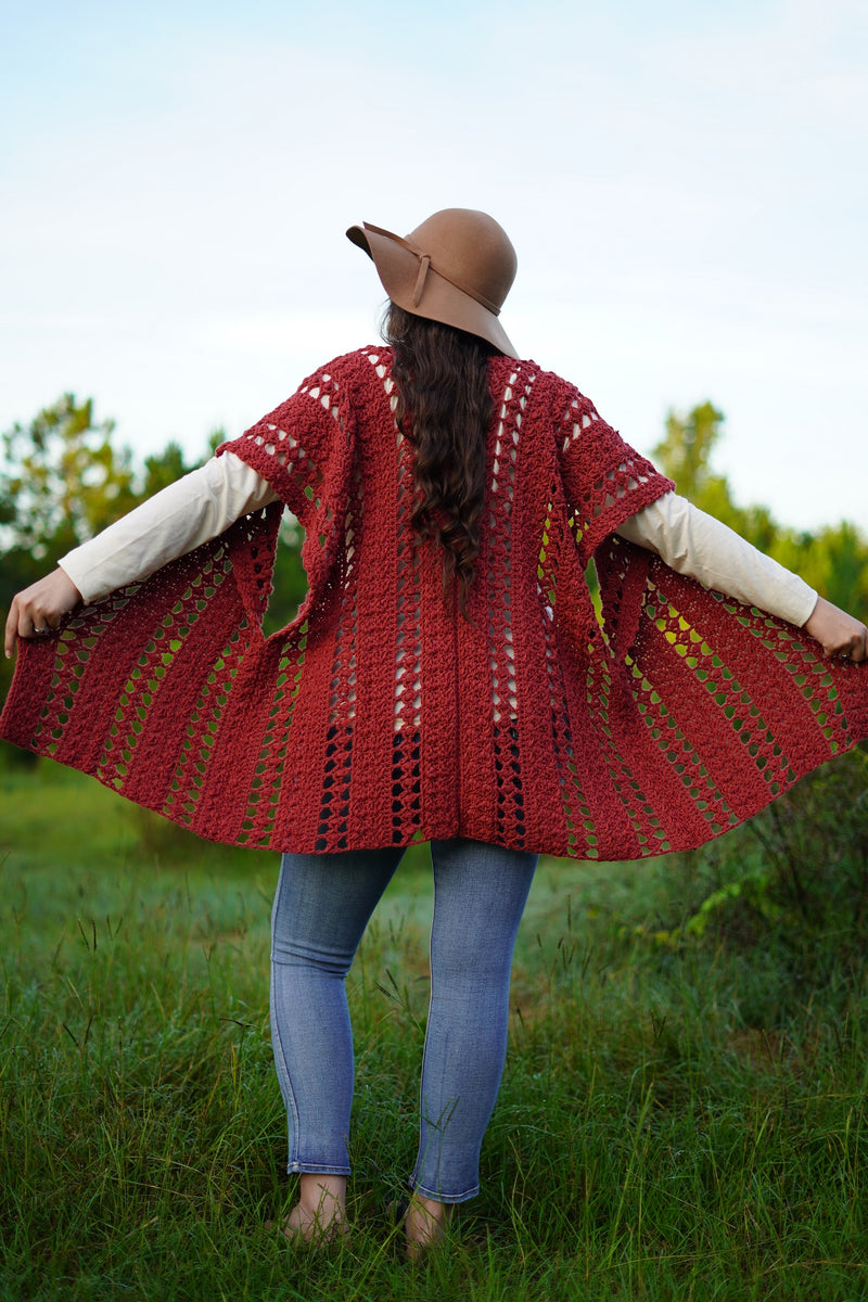 The Rosebud Dreamer Ruana is the perfect for transitional weather. This pattern gives you a loose fit that is perfect for spring, summer, & fall weather. Plus it has options to customize & truly make this piece fit you perfectly. It features simplistic stitches with a twist to give it a fun textured look.