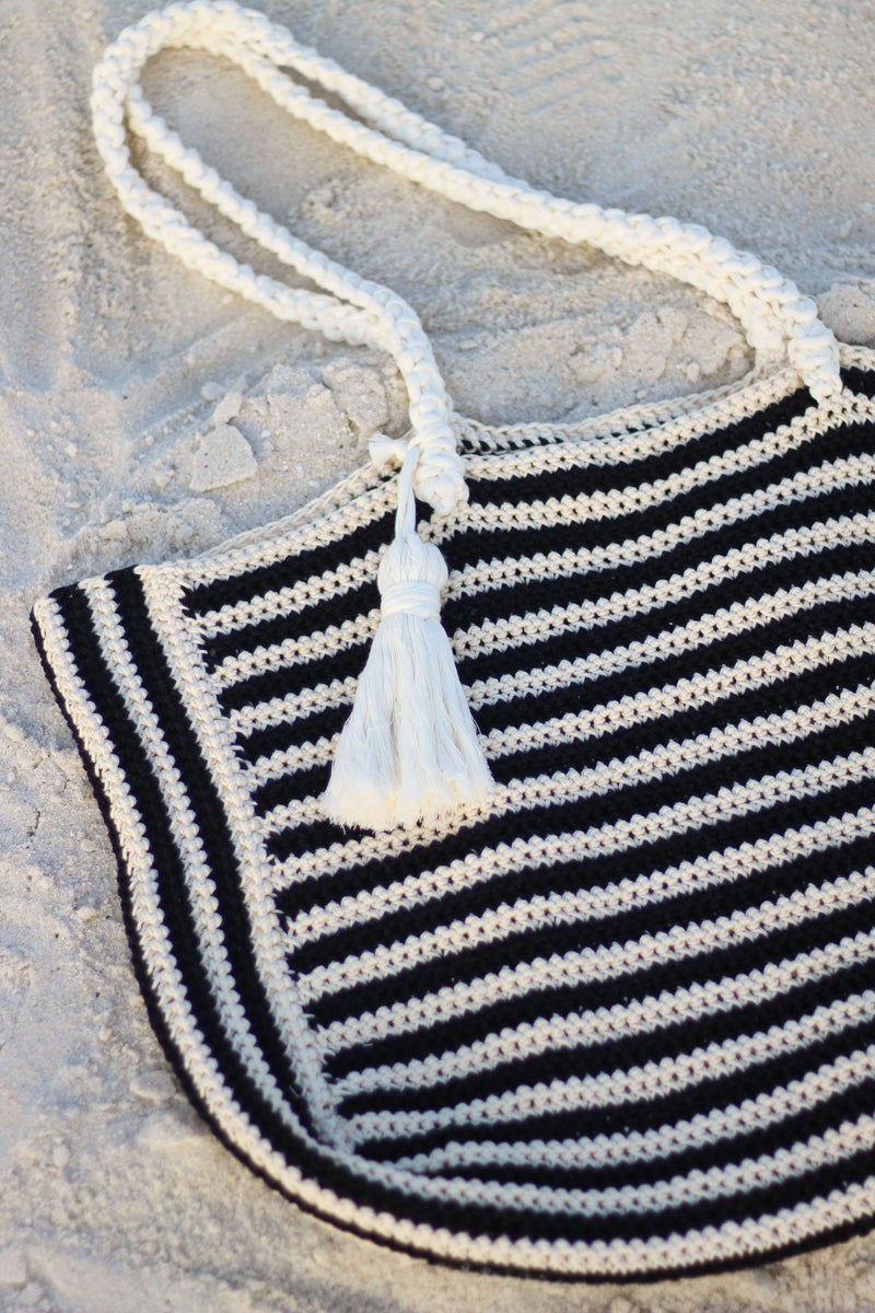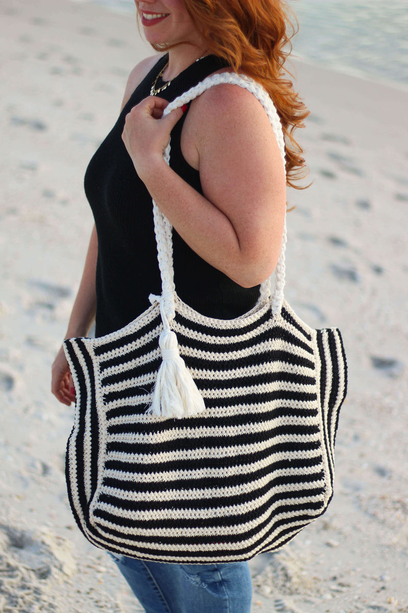 The Sandpiper Tote is a staple piece for your summer wardrobe. This large, classic, summer bag can go from the beach to dinner out on the town while never having to leave anything behind. The Sandpiper Tote features sturdy straps, beginner friendly crochet stitches, and modern reversible stripes.