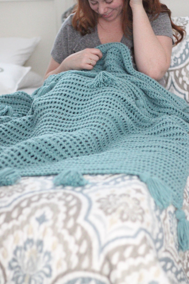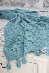 The Sea Breeze Blanket crochet pattern is perfect for all seasons and home décor styles. This design is offered in three different sizes to accommodate any and everyone who wants to snuggle up under their new favorite blanket. The texture is created by using basic and beginner stitches in a unique way, and includes tassels on each end for added fun and flare!