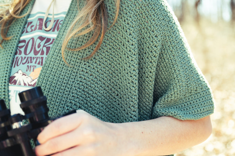 Made with Coboo® Yarn, this open and flowy cardigan is perfect for those warmer days. With its short sleeves and lightweight design, it's the perfect addition to any spring wardrobe. Stay cool and stylish all season long with the easy-to-make Simple Cardigan.