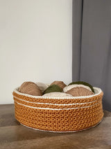 Have you ever made a double brim beanie? Ever think to make a basket that way? I have been wanting to try this technique for a while and when I saw the colors of Lion Brand’s Skein Tones Yarn I knew it was time to have a crack at it! Do you have a random skein of yarn that needs some love? I chose to use three colors because I thought having a different base color and then different inner and outer basket walls would help accentuate the construction and make it more visually interesting. However, this basket would also be beautiful in a solid!