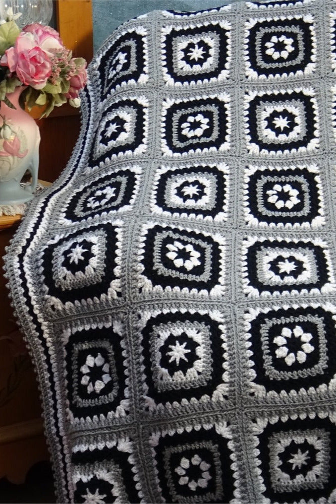 Relax under the night sky with this cozy granny square styled afghan.