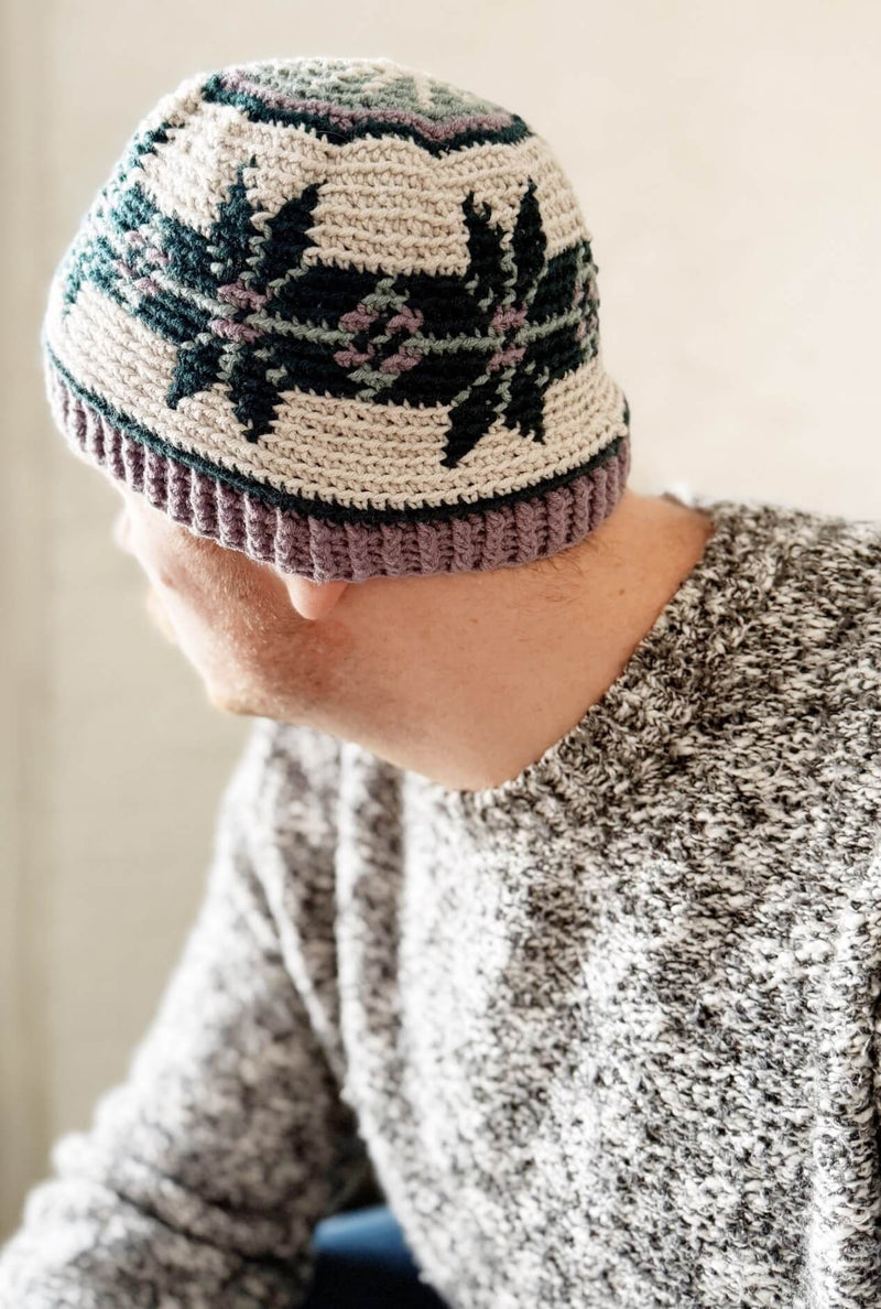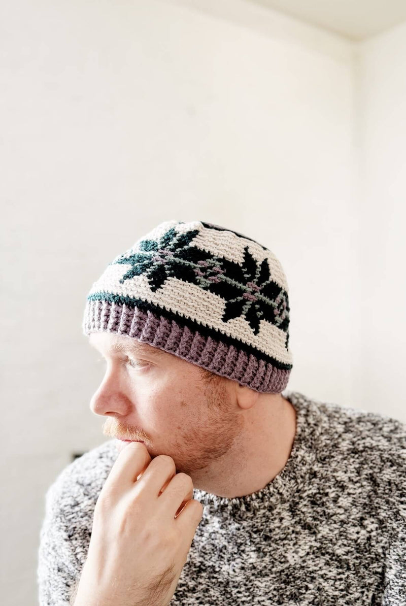 Embrace celestial style with the Starseed Beanie, a mesmerizing crochet fair isle design that captures the magic of the cosmos. Intricate colorwork creates a stunning star-like pattern, perfect for adding a touch of otherworldly charm to your wardrobe.