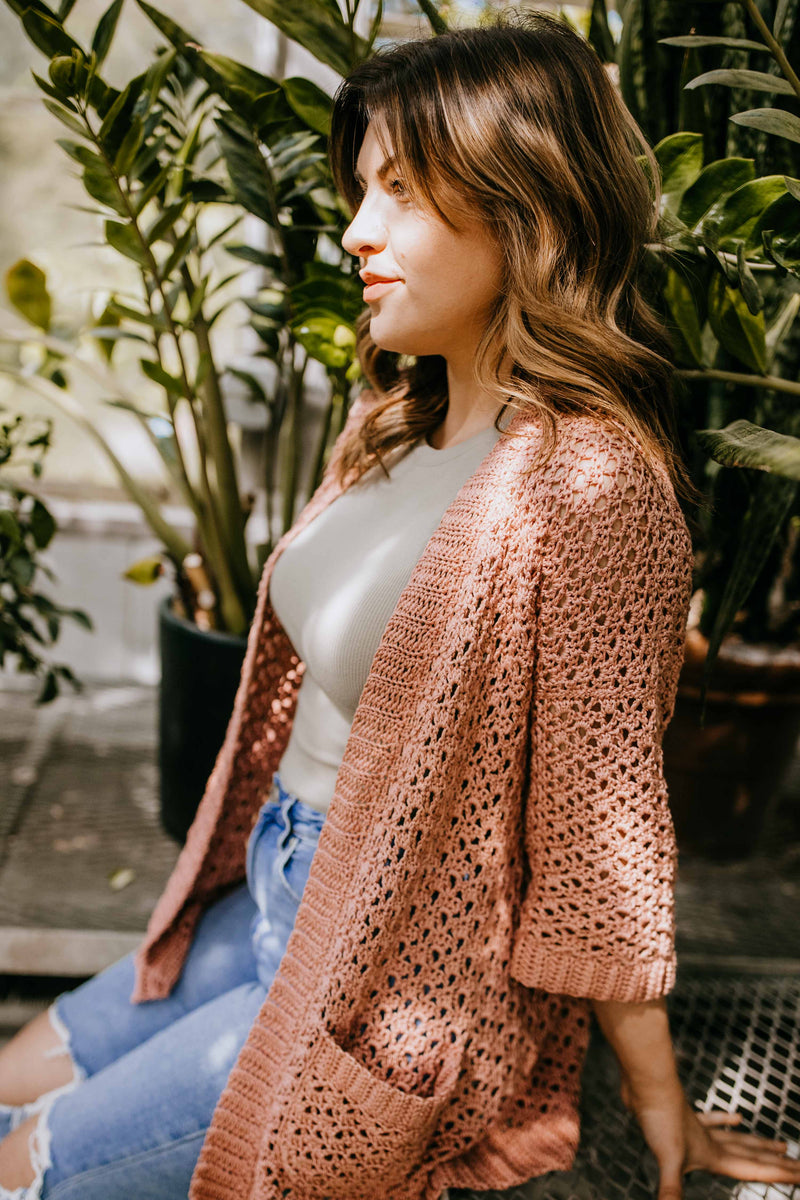 A simple yet beautiful openwork stitch pattern, slightly oversized fit, and a soft cotton blend yarn make this cardigan a wardrobe staple that’s perfect for the warmer months, and also one that you’ll be reaching for all year round. Pair it with a skirt or shorts for a casual summer vibe, or dress it up for a night out. Cardigans are like bags. One can never have too many!