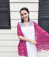 Let the Sun Kissed Wrap embrace you during the transitional seasons or chilly summer nights. This piece can be worn as a light scarf, draped around your shoulders as a wrap, utilized as a wedding shawl, tied around your waste as a sarong cover up - the choice is yours and possibilities many!