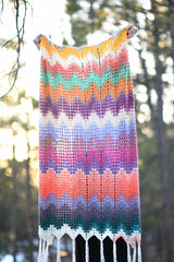 Bring color and happy vibes into your space with this gorgeous Sundance Throw! While it’s the perfect project to welcome spring and summer, this cheerful throw will be a comfort year-round. There are no color changes, and it’s an easy pattern to make and memorize. Completely customizable, choose bright colors for a boho vibe, or more subdued tones for a cool, classic look. Have fun!