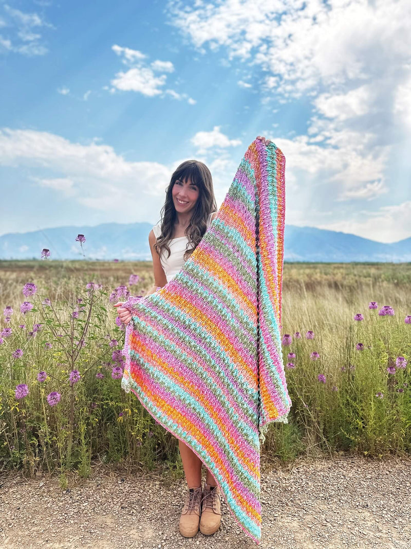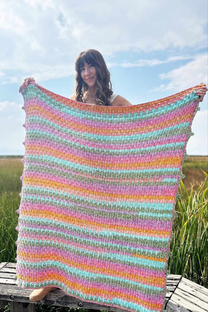 Experience the joy of crochet with the Sunrise Surf Throw crochet pattern! The calming stitch repeat ensures a delightful crafting experience, while the colorful Mandala Ombré yarn creates a unique striping effect in every blanket. The charming picot wave edging adds a playful touch to the sides, making this throw both beautiful and fun to create. A detailed video tutorial is included to guide you every step of the way!