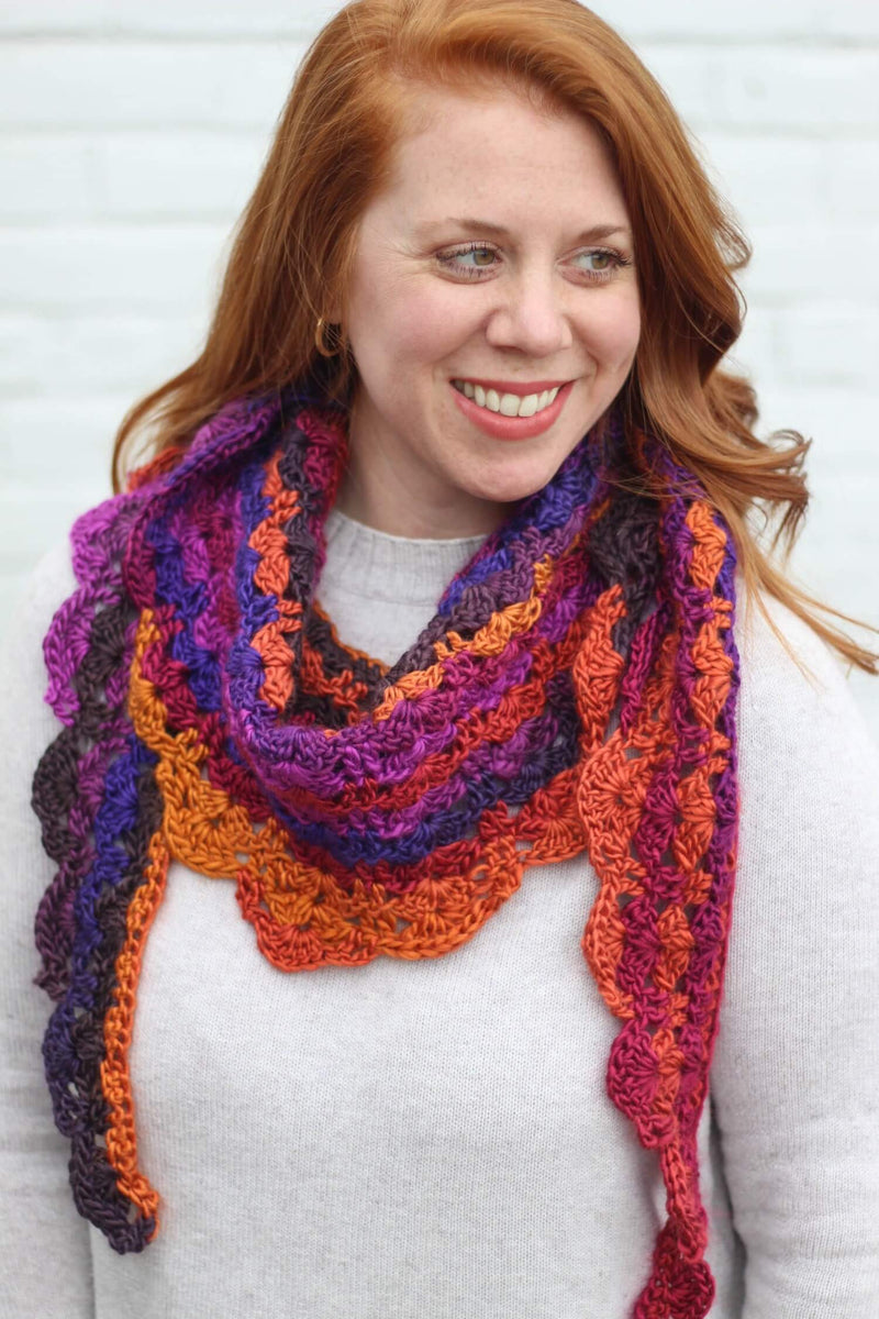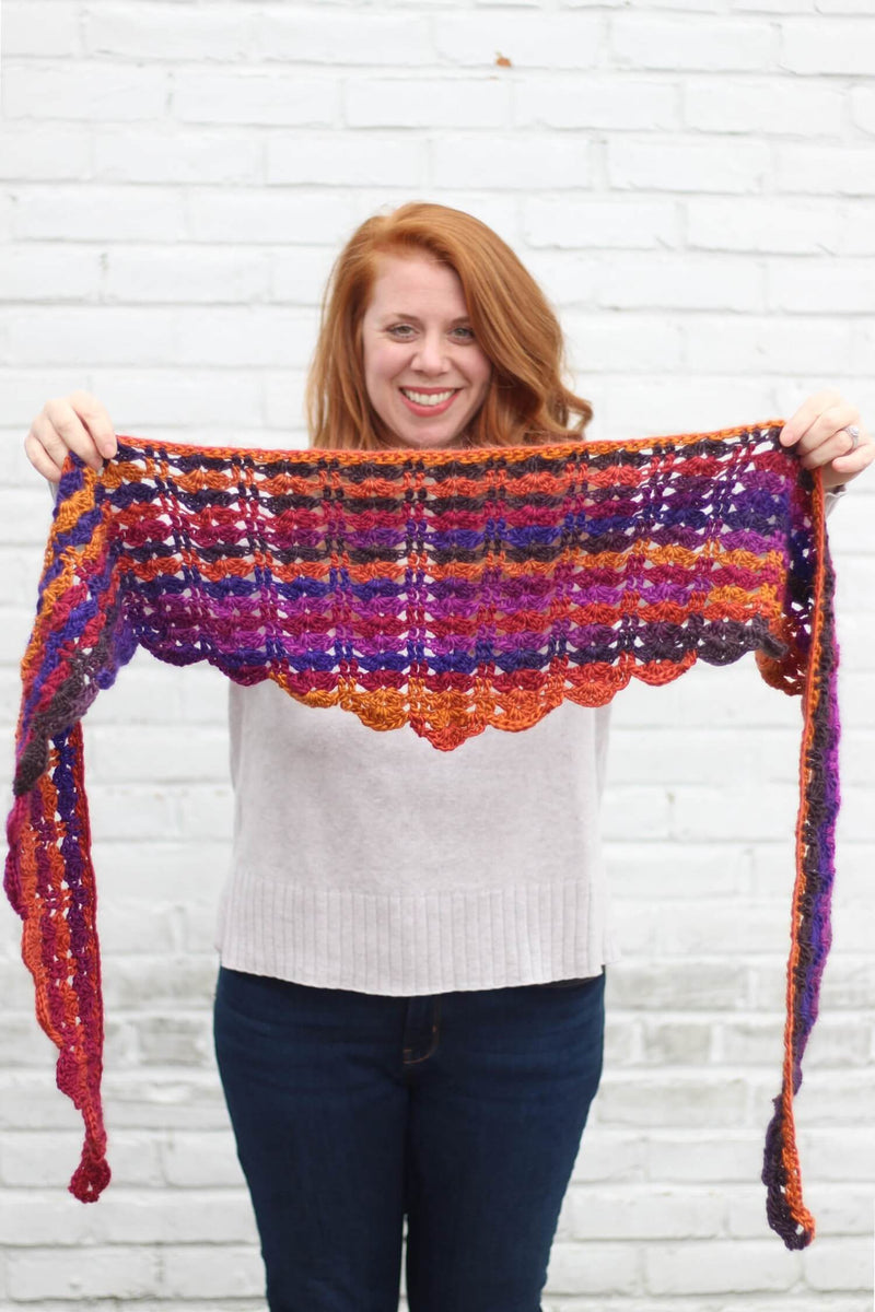 Wrap yourself in color and texture with the Sydney Shawlette. This lightweight, scalloped-edge summer shawl is perfect for breezy evenings or dressing up a casual outfit. Designed with vibrant ombre yarn, each row blends seamlessly into the next, creating a gorgeous wave of warm and colorful hues. Whether you're headed to a summer festival or just enjoying a walk at dusk, this easy-to-follow pattern will keep your hooks happy and your style radiant.