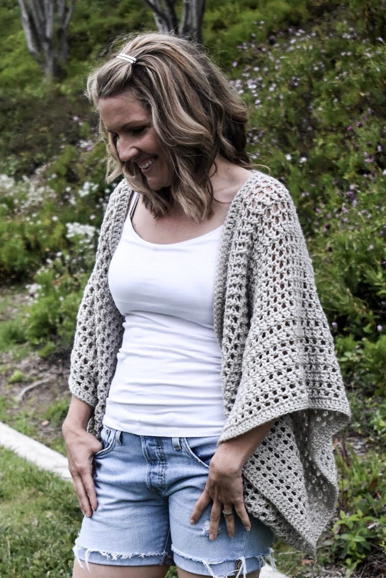 With its dramatic fan sleeves and waist length, this airy and lacy textured Cardigan is a seasonal go to! Top off a casual Jean and Tee outfit for an effortlessly put together look, or layer it over a Dress!! This would also work brilliantly as a layering piece in the colder months! The Boho Cardigan is a one-piece construction, and seamless crochet project, but with the extra details to give it an intricate look. The Pattern is written with easy to understand instructions and it includes a multi-Picture Tutorial.