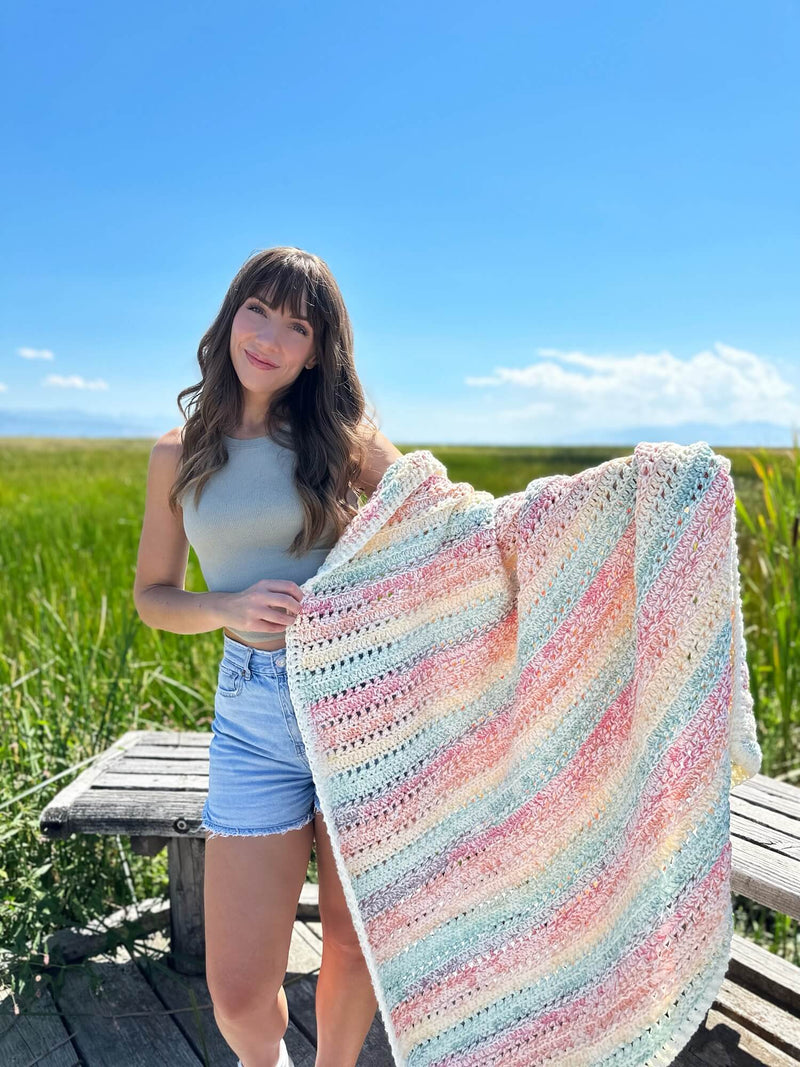Introducing The Fairy Floss Throw, designed to bring both style and simplicity to your crocheting experience. This pattern showcases a unique twist by utilizing two different yarns held double, resulting in a stunning self-striping effect. With an array of colors available you can customize your blanket to match any decor. The pattern features a 4 row repeat, making it a breeze to stitch up and perfect for all skill levels.