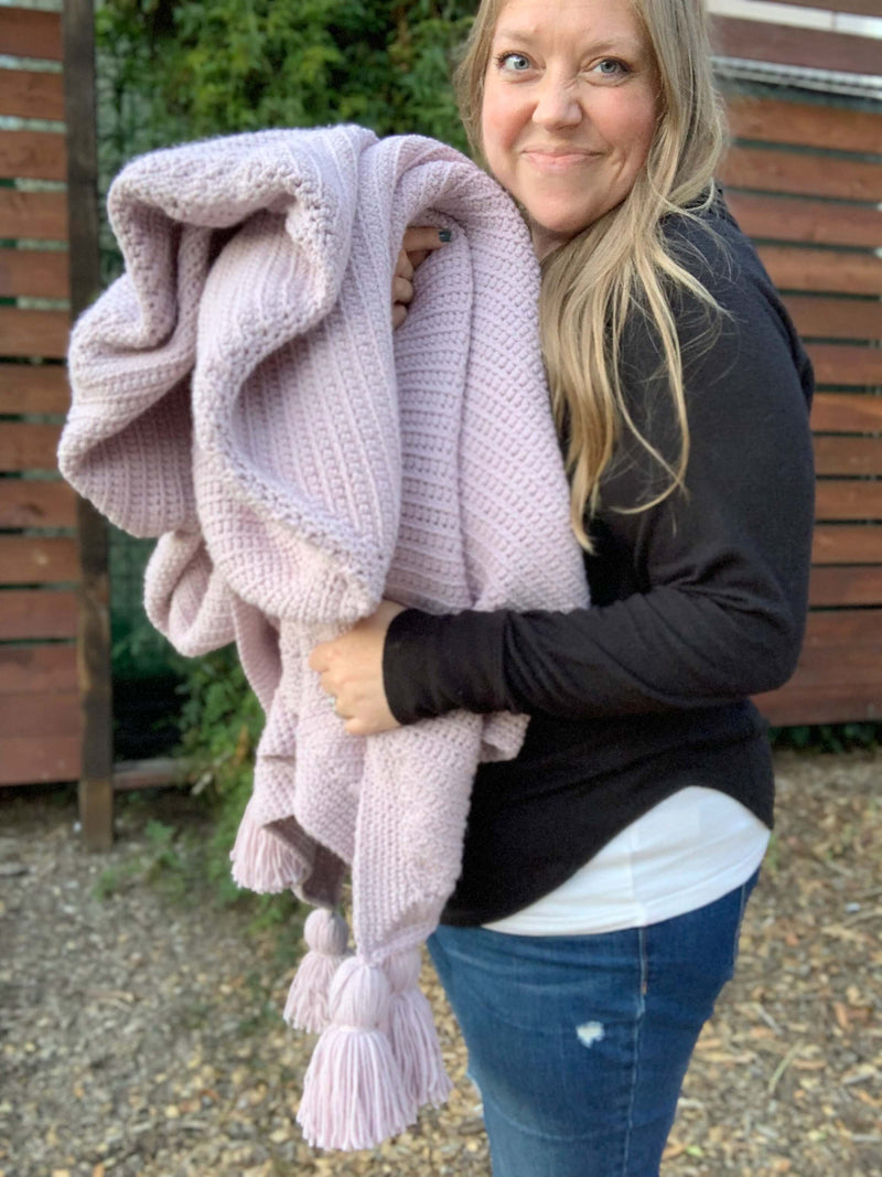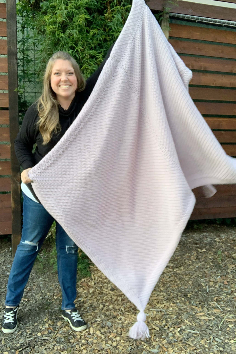 The Hattie Blanket is every crocheter’s dream. Made using basic stitches on the bias in four panels, it’s the perfect mindless crochet project. The unique construction and extra-large size make it the perfect home accessory that the whole family can enjoy.