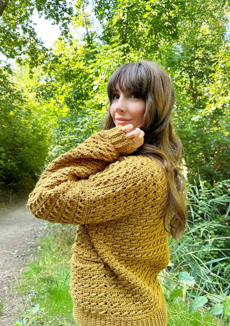 Wrap yourself in the cozy elegance of the Maeve Cardigan, featuring a beautiful textured stitch and a relaxed, loose fit that’s perfect for layering. With roomy pockets and an easy-to-follow pattern, it's as fun to crochet as it is to wear. The pattern includes a video tutorial and pairs perfectly with its sister knit design for a matching fall look.