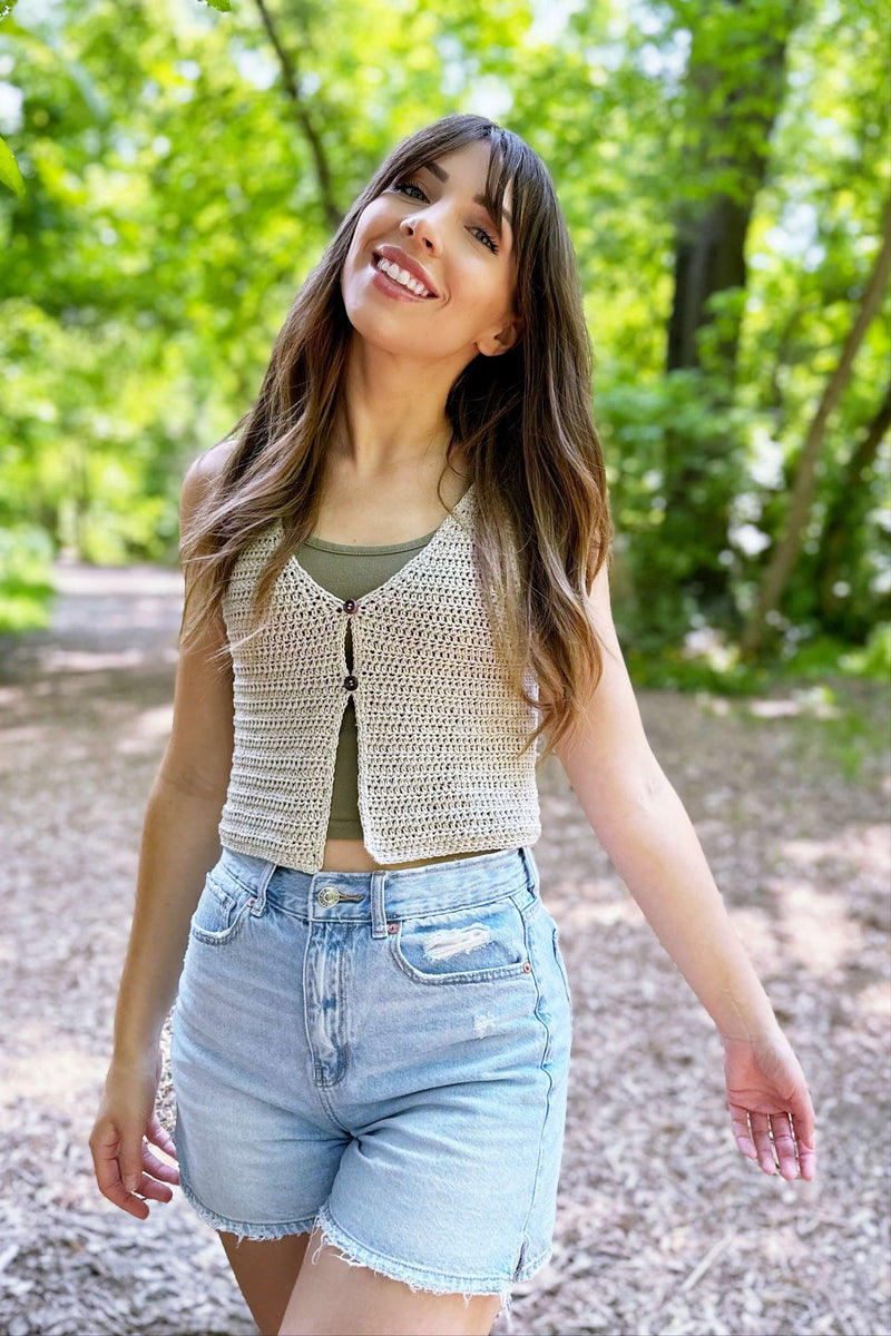 The Sunnyside Vest is a stylish and versatile crochet pattern that is perfect for intermediate level crocheters. The vest features adorable motifs along the back and has a flattering V-neckline with a 2 button closure. It’s the perfect addition to any wardrobe!