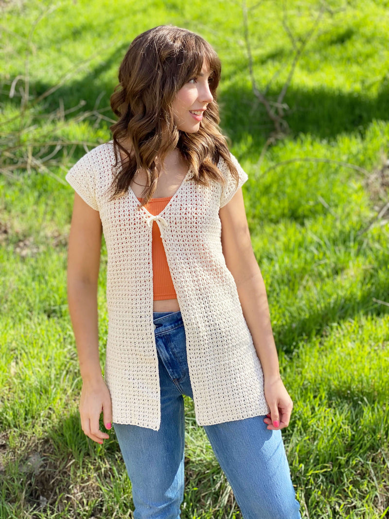 The Wendy Cardigan is the perfect spring design to add to your handmade wardrobe! It’s beginner friendly and has a fun flirty feel! It features a side slit and a cute tie to bring it all together!
