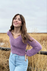 Introducing "The Wisteria Sweater," a chic crochet pattern designed for an intermediate skill level. This cropped pullover boasts a flattering v-neck and wide ribbing for both style and comfort. The intricate texture adds a touch of elegance to the design. Perfect for those seeking a satisfying challenge, this pattern strikes a balance between sophistication and creativity.
