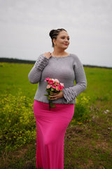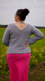 The Thistle Pullover is just what you need for your next project. The V neck pattern uses a fun stitch repeat that gives your sweater a beautiful and stylish texture. Plus a fun detailed bell sleeve & little accent stitches around the bottom hem & collar. It's the perfect top to dress up your style.