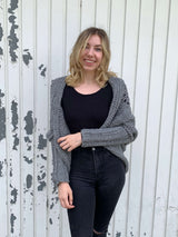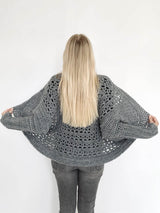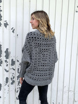 A comfy, lightweight shrug that is perfect for layering. The Tulip Square Shrug is available in size S-5XL and features a large granny square on the back, textured sleeves and a collar ribbing.
