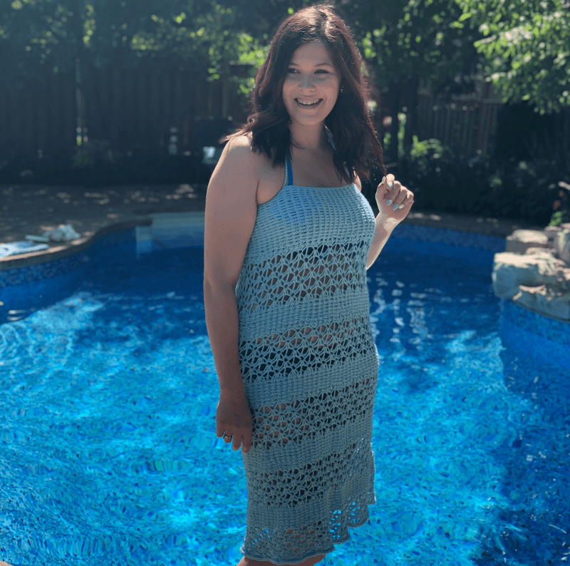The Tunisian Chill Cover Up is an intermediate level Tunisian crochet design, or for the adventurous beginner! It is constructed in one piece from the bottom up, so you are decreasing and making it smaller as you go, which means the hardest and longest parts are at the beginning! Then you’ll be able to chill by the pool in your Tunisian Chill and enjoy the rest of summer.