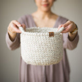 Crochet this sturdy basket using the beautiful waistcoat stitch also known as center single crochet! Choose to crochet your basket with or without crochet handles, and add a decorative edge with the crab stitch. These crochet baskets are a wonderful way to add a touch of handmade and luxury to your home, and they are such a practical and chic way to store items!