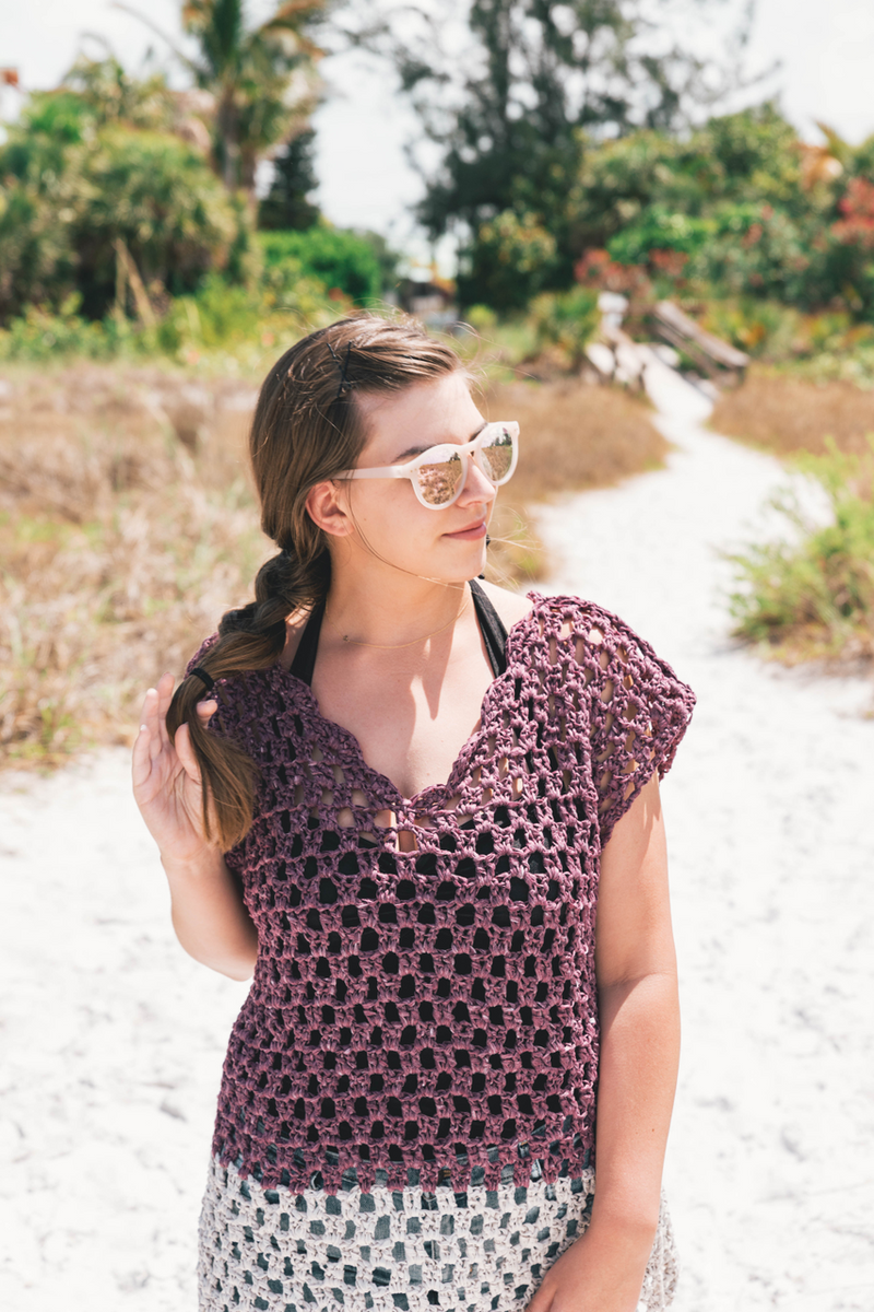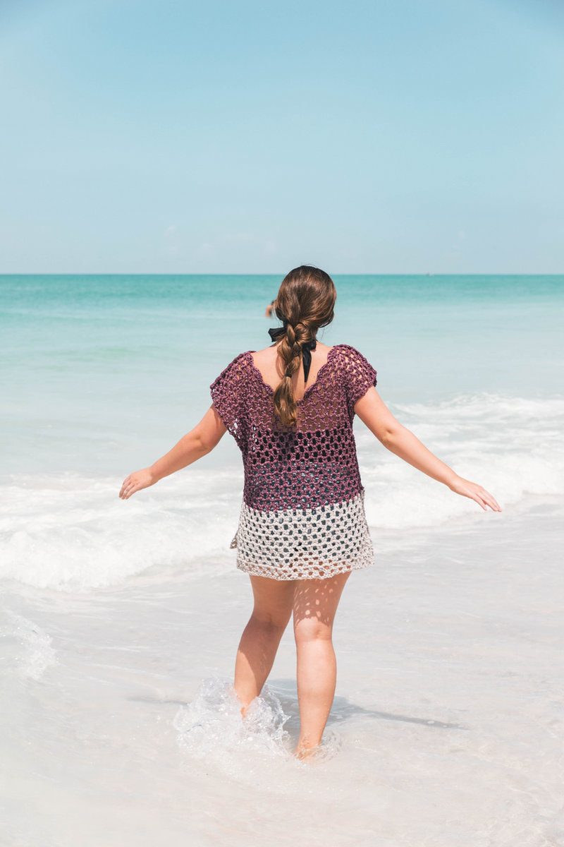 The Weekender Tunic is light and breezy, the perfect topper for wearing over a swimsuit to the beach or over jeans and a tank for versatile warm weather wear. It works up in just one weekend with soft, unique Rewind yarn. It's got plenty of breathable, roomy fabric to keep you covered and confident with easy layering. The scallop neckline adds a feminine touch to this modern color block piece.