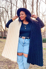 Do you ever wish you could wear your weighted blanket to dinner because...SAME! There are no seams, and this knit-look poncho is worked flat, making it an ideal project for binge-watching. An easy and quick poncho pattern designed to keep you cozy while stitching and afterward wearing. The weighted crochet poncho will keep you busy for three to four movies depending on how fast you stitch and how long the movie is. Now you can take your blanket with you everywhere you go!