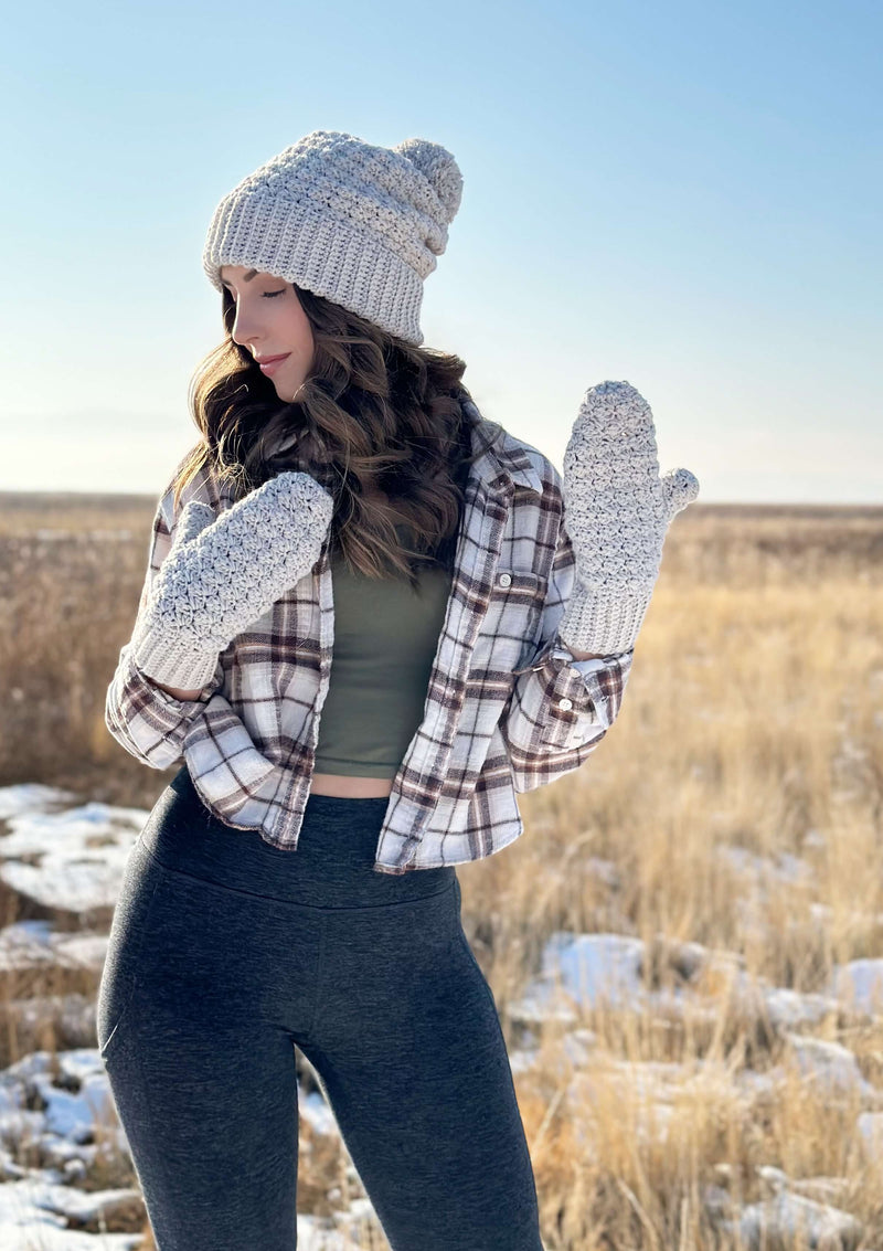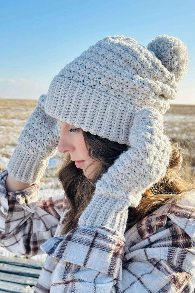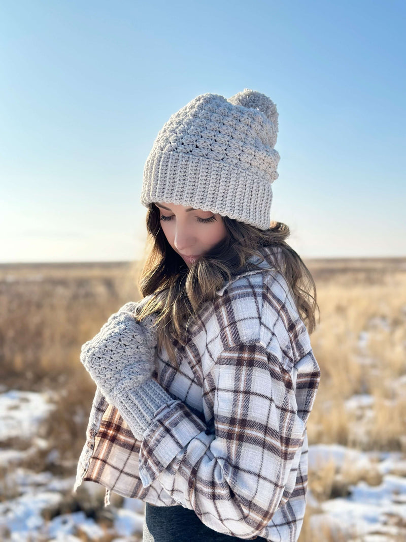 The Winter Moonlight Set will keep you cozy through all the chilly days. This kit includes both the beanie and mitten pattern. They feature a stretchy ribbing for a comfy fit and a beautiful textured stitch repeat. The beanie has a nice slouch to it and looks perfect with an added pompom.