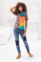 10 (dc, ch 1) groups = about 4 in. (10 cm).