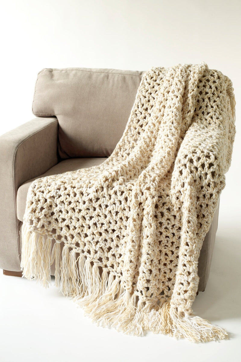 3 V-sts + 4 rows = 6 in. (15 cm) in pattern with 3 strands of yarn held together.