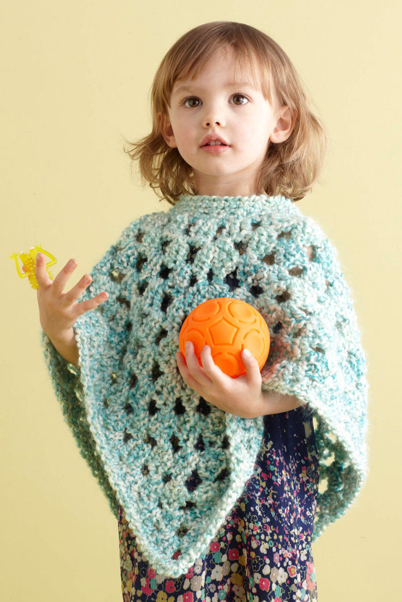 9-12 months (2-3 years)Finished Circumference 21 (21) in. (53 (53) cm) at neck edgeFinished Length 12 (15) in. (38 (49.5) cm), (poncho will lengthen when worn).Note Pattern is written for smallest size with changes for larger size in parentheses. When